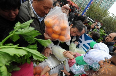 联商网消息:11月16日,家乐福上海在万里店举办“直采大篷车”活动。本次活动的商品可谓琳琅满目:来自上海郊区蔬果合社的10余种20吨新鲜蔬菜(大白菜、青菜、菠菜、白花等)被直接从田间直接运往店前广场。此外,10余吨南汇蜜桔、20吨来自山东的“爱心芹菜”、以及来自家乐福中国“蔬果茂”具备出口品质的5吨蜜柚,也同时向市民供应。新鲜、优质的蔬果,价格普遍低于市面价格15%-20%,吸引了万里大华社区的居民争相购买。据悉,“直采大篷车”项目第一站将在万里店持续3天,并将于年底前陆续在金桥、古北、武宁、川沙、徐泾、真北店举办。总计将向市场供应超过400吨新鲜蔬菜、100吨新鲜水果。