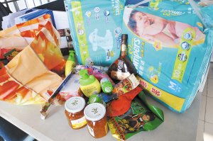 追到巷子深处,两人见负重难逃脱,将偷来的货物丢弃在隐蔽的角落里后分别从两侧巷口逃窜。赃物中有三瓶蜂蜜柚子茶罐头、三大袋婴儿纸尿裤、牛肉干若干、洋酒一瓶以及许多零食。用“我查查”软件对所有货物条形码逐一扫描,发现市场价格超过1500元。