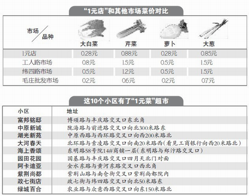 昨日上午9时,郑州市首批“1元菜”超市在中原新城、富邦铭邸、湖光新苑、大河春天等大型社区附近正式开业,共计有10家。