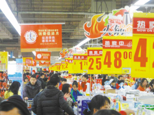 市民到超市大采购丰富节日餐桌。王若惠摄