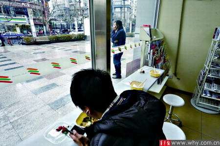 面对高峰时突然增加的人流,各家便利店的店员则有着各自的应对方法。