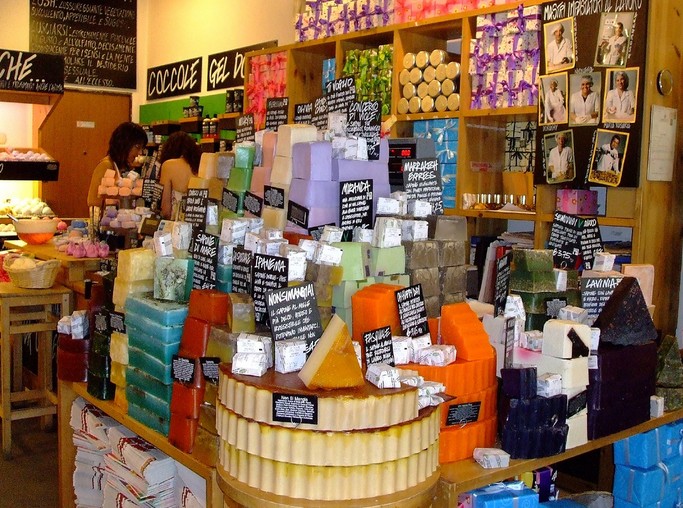 走进Lush专卖店,没有一个顾客不是“Wow”声大叫,逐一又摸又闻,笑弯了腰地买个不停。那里布置得像欧美小镇常见的农夫利伯维尔场,缤纷摆设的产品,一个个看上去像美味糕饼、新鲜蔬果,连气味都像透了,其实却是Lush新鲜手工制造的美妆用品。其中,最出名的是精美的香皂、沐浴球,顾客可以按照自己的喜好切割、称重计价。把简单寻常的沐浴过程变得新奇有趣。