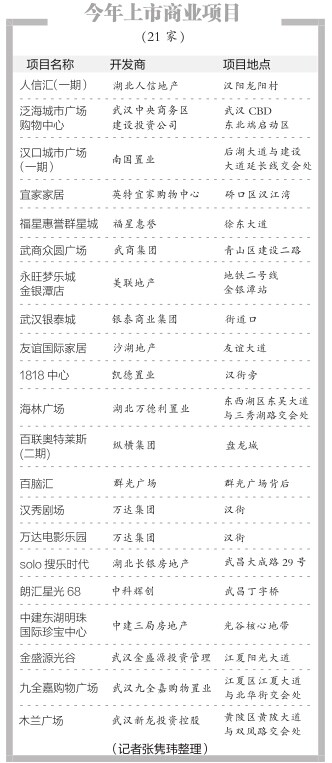 武汉第一家具有综合商业项目性质的设施为1979年开业迎宾的民众乐园。截至去年底,武汉共拥有20家大型商业项目。今明两年开业的商业项目总数将是过去35年的1.5倍。