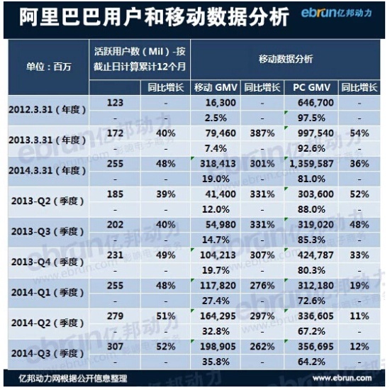 此外,值得注意的是,阿里巴巴第三季度移动业务表现抢眼。