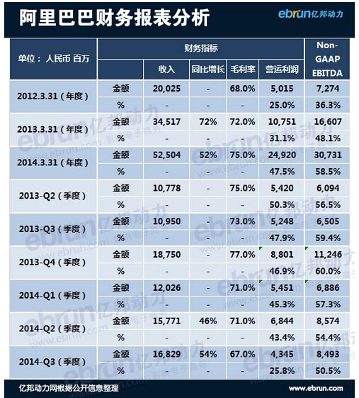 市值一举超越沃尔玛,是资本助推还是实力体现?公开了IPO后首个季度(2014年7月-9月)财报的阿里巴巴终于开始“裸泳”。百元股价、千亿市值(美元),这样的阿里巴巴在业界看来够不够强劲?回报符不符合投资人的预期?未来前景又会如何?亿邦动力网邀请国内某知名B2C电商CFO,就阿里第三季度财报做如下分析: