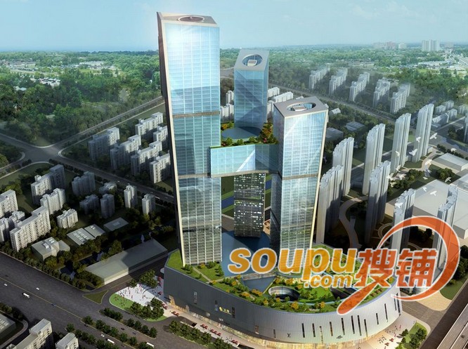 南京河西金鹰天地广场总体量90万平米,其中商业百货面积达到48万平方米,问鼎“世界百货之最”。项目由地下、裙楼以及3幢塔楼组合而成,地下及裙楼构成整体百货部分,即48万平米,其中包括30万平方米的高端购物中心,3幢塔楼分别高250、300和350米,在200米的空中由一个2万平米的空中平台将3幢塔楼串联,36万平方米的5A级高端商务写字楼和8万平方米的五星级酒店等,成为集商务、商贸、酒店、休闲餐饮功能为一体的河西江东板块的新地标。