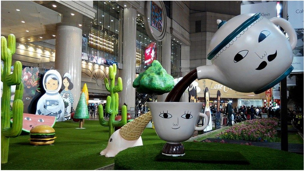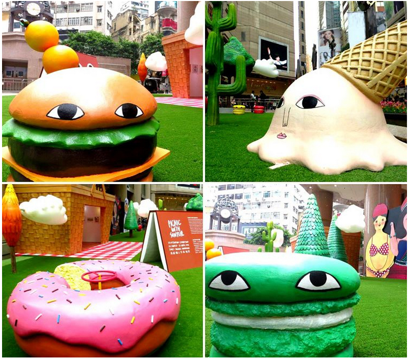 SUNTUR 插画中的特色浮云将化身巨型气球在空中加以点缀,让野餐场景锦上添花。 时代广场欢迎您与三五知己结伴到场,在专为您们而设的马卡龙形状座椅上悠闲野餐。