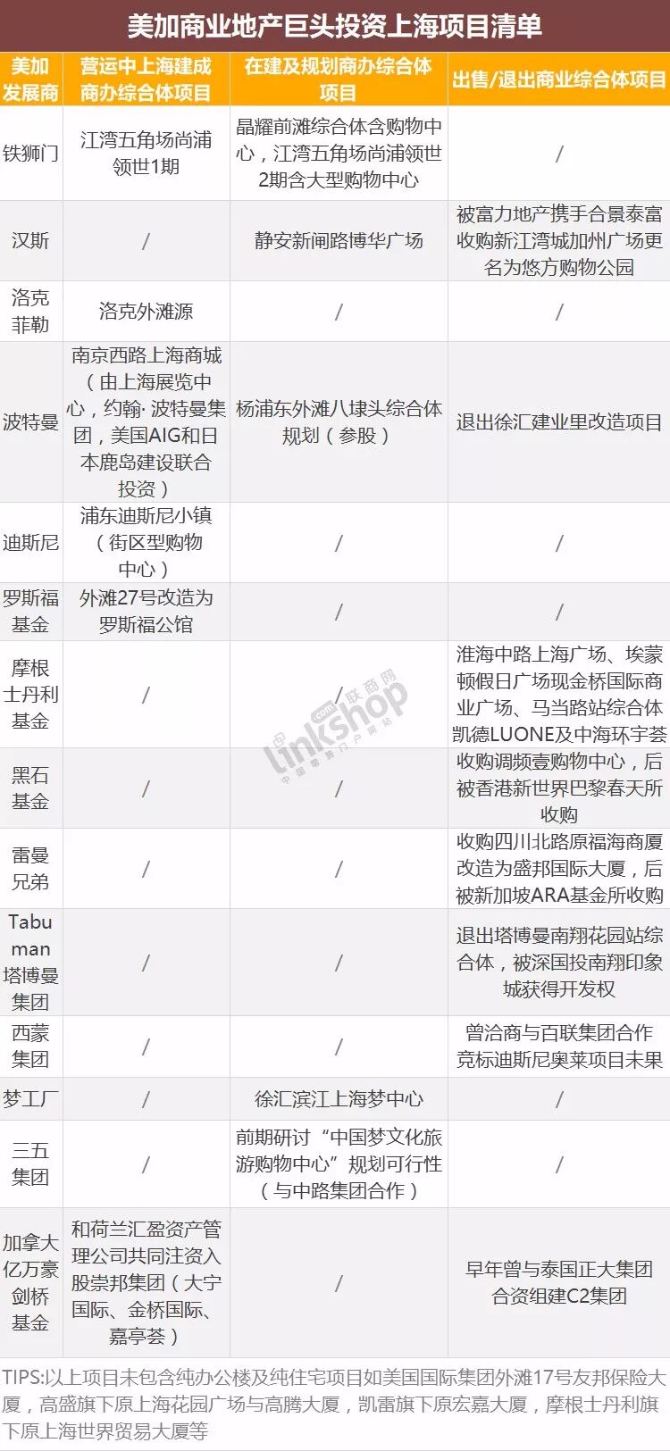 据联商网数据中心统计,迄今已有15家北美企业陆续参与了20多个上海商业地产项目。