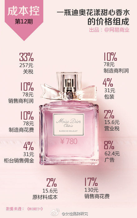 一瓶迪奥花漾甜心香水售价780元,实际原材料成本仅需15.6元,且看整个奥迪花漾甜心香水的价格组成。    查看(3412)