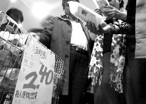 19日,(北京)崇文门一超市内,市民在选购食盐。