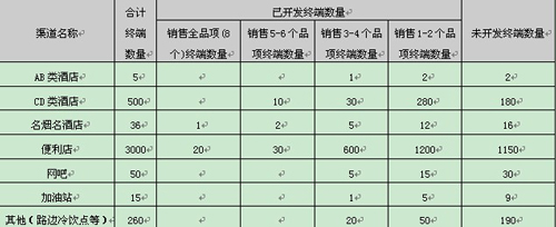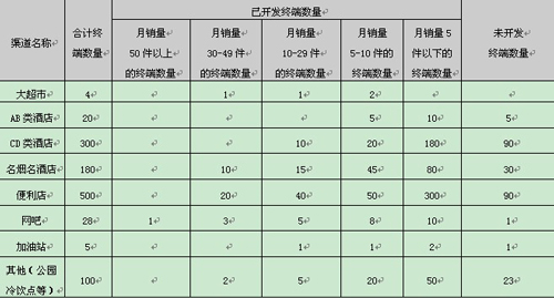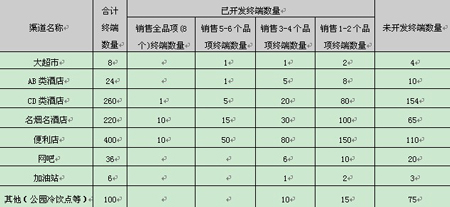 【分析】终端网点只有宽度缺乏深度,例如:区域内铺市率做的很好,但是只是网点多,而正真能创造销量的核心网点比较少。