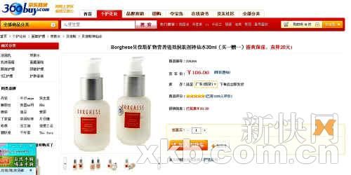 随后,新快报记者再对比了京东商城与淘宝商城的同类贝佳斯产品的价格,发现京东商城的售价竟不及淘宝价的1/3,有的甚至更低。如30ml的矿物营养强效润肤剂神仙水,京东商城买一送一的价格仅为126元,折合每瓶63元,而淘宝商城售价为320元,相当于原价打了近3.9折。