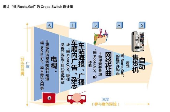 之后,“喝Roots,Go!”的牢骚话系列被出版成书,引起了更多人关注,因此书店和书又成为新的信息接触点。这个案例的Cross Switch设计图如图2所示。