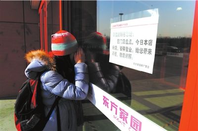 昨天中午,记者来到位于来广营西路的东方家园北京总店。商场玻璃大门上贴着一张通知,称“因门店盘点,暂停营业”。