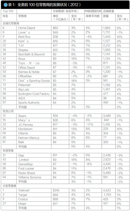 全美前100位零售商的发展状况