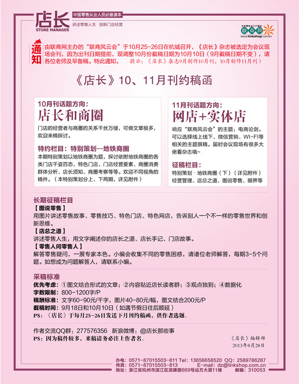 《店长》杂志采访文章,如果老师有资源,可以提供采访对象,或提供采访稿件。
