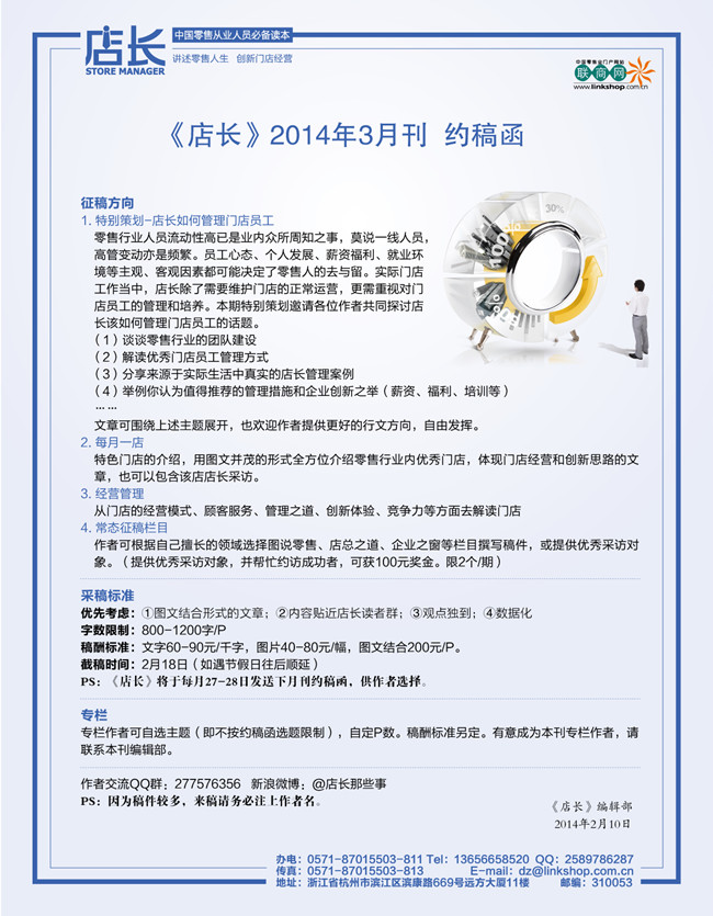 当前位置 -> 首页 -> 《店长》2014年3月刊开始征稿