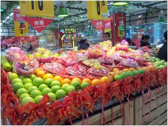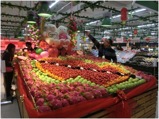 2013年情人节沙井佳华商场用水果进行陈列的效果