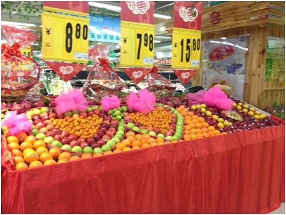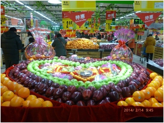 2012年沙井佳华商场情人节用水果进行陈列的效果