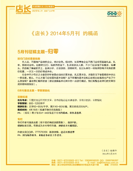 优先考虑:①图文结合形式的文章;②内容贴近店长读者群;③观点独到;④数据化
