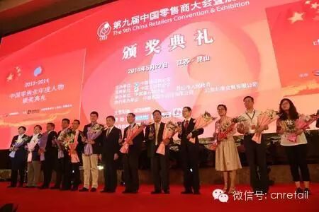 2014年5月27日,由中国商报主办的“2013-2014(第九届)中国零售业年度人物”在中国零售商大会暨展会上揭晓,当晚,颁奖仪式在江苏昆山隆重举行,近千名来自全国零售行业的代表见证了这一激动人心的时刻。颁奖仪式由中国商报社社长徐舰主持,第十届全国政协副主席、中国企业联合会会长王忠禹、第十届全国政协常委、原国内贸易贸易部部长陈邦柱参加了颁奖仪式,中国商业联合会会长张志刚为获奖的十一位年度人物颁奖。