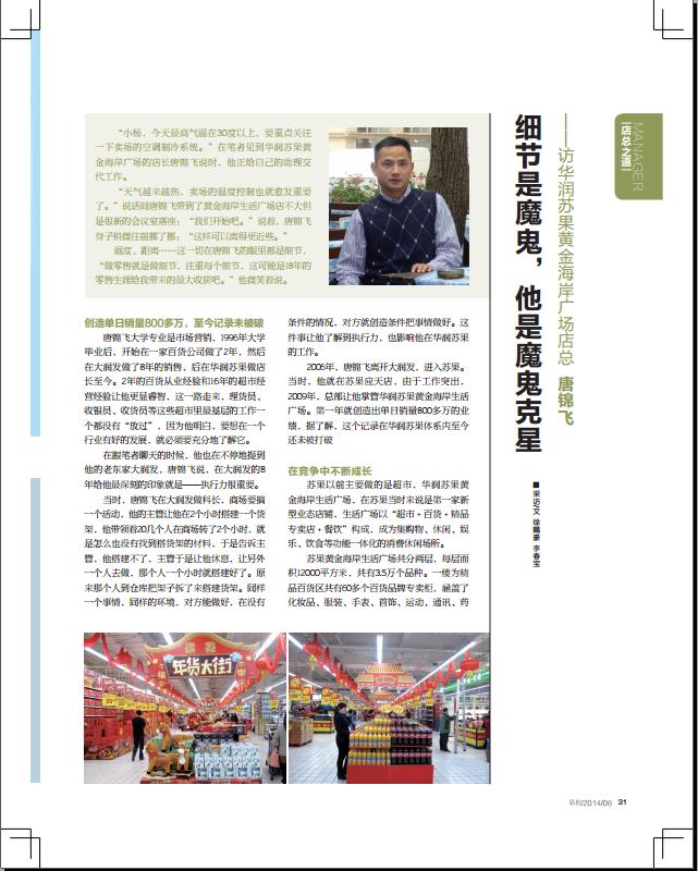 温度、距离……这一切在唐锦飞的眼里都是细节,“做零售就是做细节,注重每个细节,这可能是18年的零售生涯给我带来的最大收获吧。”他微笑着说。