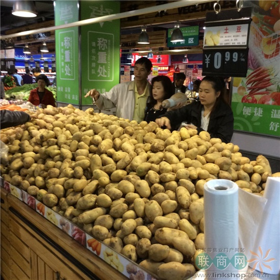 (图:当地人爱吃土豆,这些原产地来自河北的每天都要卖出去5、6吨,整体生鲜日均吞吐量达到50吨以上。)