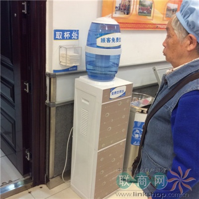 (图:这是免费饮用水,边上还有其他免费的设施设备,还有休息座椅,如果来往员工看到有顾客坐着休息,就会倒杯水给送过去。)