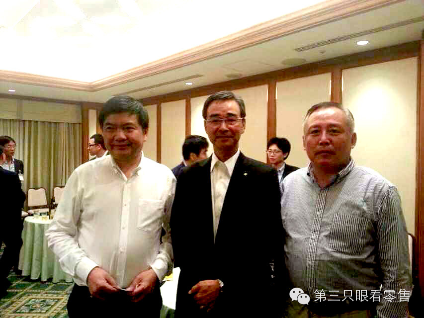 【7月11日,安德利百货股份有限公司董事长陈学高(左一)应邀赴日本流通经济研究所做《中国城镇化下的零售市场》专题演讲。日本三菱商社,花王,日本烟草,三立制菓,ACCESS,東洋制罐,大王制纸等近30家日本公司代表以及日本著名商学教授渡边逹朗,日本流通经济研究所主任神谷涉教授,日本早稻田大学博士李雪,中国首都经济贸易大学陈立平教授(右一)出席了报告会。】
