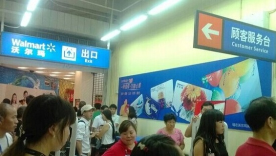 7月15日上午,记者来到位于我市人民路与劳动路交汇处的沃尔玛购物广场,在超市三楼入口,大门已经紧闭,大大的公示牌上标示着,沃尔玛即将在7月29日停止营业,二楼超市出口处,不少身着红色沃尔玛工装的员工坐在大门口,一些准备进入购物的市民被挡在外面,称沃尔玛已暂停营业。