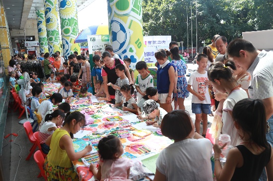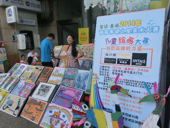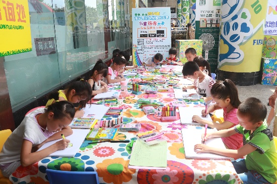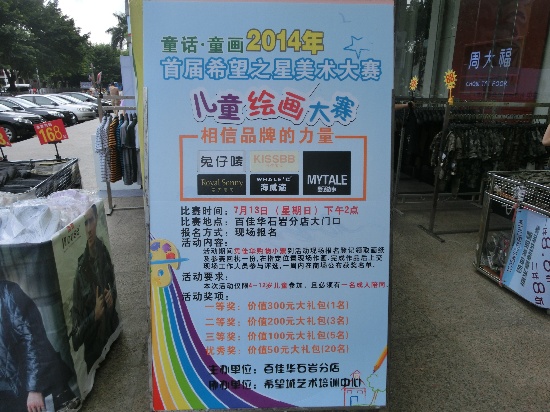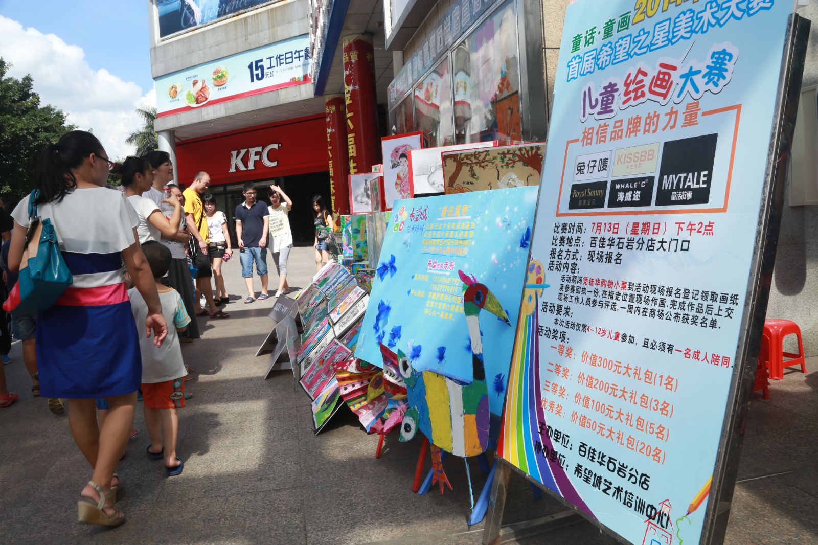 深圳这座移民城市的特点是,每逢署假,全国各地的儿童都到深圳来和父母团聚,做父母的一定想办法让小孩子在享受童真的时候,也让小孩子学习一定的知识。佳华商场石岩分店抓住这一时机,开展了儿童绘画培训和比赛。