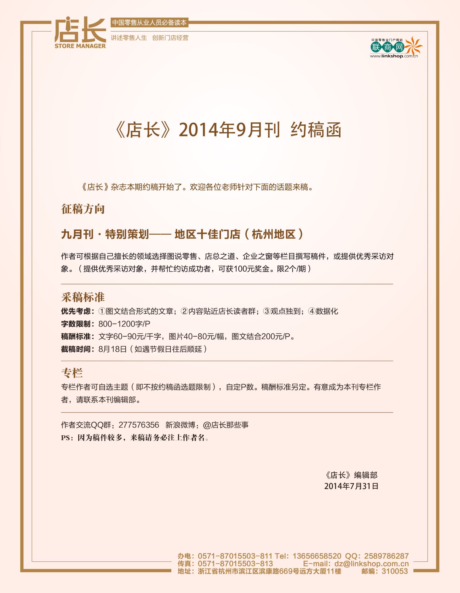 《店长》9月刊开始征稿啦!