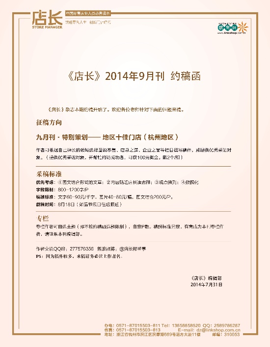 当前位置 -> 首页 -> 《店长》9月刊开始征稿啦!