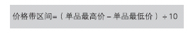品类宽度太宽,指的是价格带区间大于品类商品的最低价。这时候,我们须得淘汰最高价或者最低价商品,直至价格带宽度低于最低价。