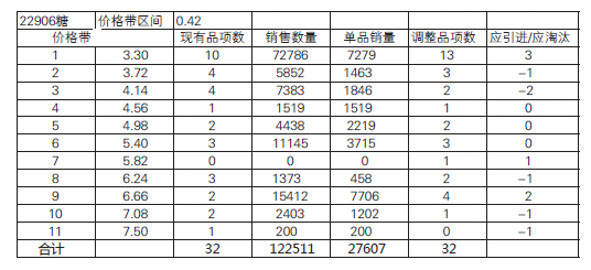 当对自己的商品结构有了充分分析后,我们就会看自己门店的商品了,我们就知道我们在哪个品类的哪个价格带区间的商品多了还是少了,我们需要在哪个价格带区间引进或者淘汰多少个商品。