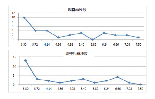 这时,我们再来看标杆门店和竞争对手门店的商品结构,就有明确的目的性了,我们可以在别人的门店里找到我们所需要的价格带的商品,并有针对性地收集有效的商品信息,找到合理的供应渠道,引进商品。同理,我们也可以研究在各价格带区间的商品的重复性,根据各单品的销售表现,有目的地淘汰相应单品。