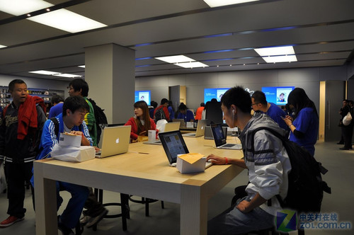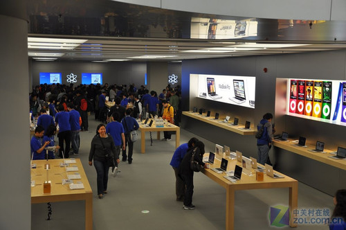 开业前,成千上万苹果产品的爱好者汇集在新店门前,准备在第一时间一睹新店的风采。据排在队首的几位苹果爱好者介绍,他已经在这里排队超过24小时了。但笔者并未从他们脸上看到一丝疲惫,相反,印在他们脸上的是兴奋和期待。