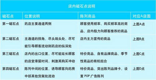 1、A店第一磁石点为收银台侧通道,左侧开架处陈列感冒消炎、止咳化痰类常用药,右侧柜台陈列参茸虫草类补品,吸引顾客眼球,增加购买力。