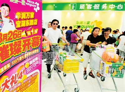 8月26日,华润万家在银川首家卖场华润万家宝湖东路店开张营业,开业首日销售额突破280万元;9月18日,物美大卖场银川森林公园店盛大开业。这标志着继北京华联、国芳百盛入驻银川,分走新华百货商贸百货和综超一杯羹后,苏宁、国美入驻银川,抢走新华百货家电市场部分份额后,又一次有力地打破新百市场“独占”的局面。