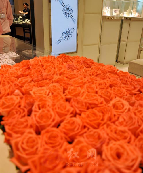 久光百货内某品牌钻饰柜铺满鲜花,极尽温馨浪漫