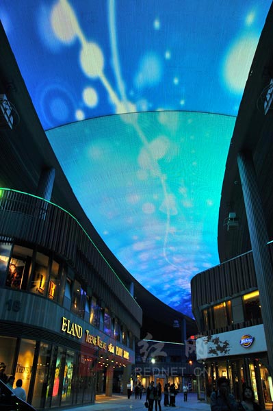 51万方的圆融时代广场,在整个华东地面上足以让人叹为观止。500米“世界第一长”天幕让“全苏州向上看”,既是广场的最大亮点,也是绝佳的商业广告载体。到广场购物的客人常常会因为想一睹巨大LED屏的天幕电影而流连至晚,横贯圆融时代广场天幕街区的巨型神奇LED天幕,超越美国拉斯维加斯,构筑起了世界罕见的天穹。天幕上500米的LED连成一体,将先进的照明技术、华丽的大型显示屏幕技术、震撼的音响视频技术完美结合,展现出璀璨夺目的画面效果和动人心魄的音响效果。