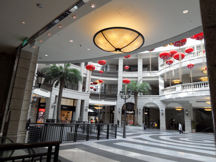 在底楼第一家,就是名牌BVLGARI(宝格丽),店堂非常宽敞,陈列着名贵的珠宝、顶级手表。在底楼还有爱马仕、圣路易、梵克雅宝等名牌专卖店。 这座城堡式百货大楼地下4层,地上9层。其中地下三层、四层为停车场,地下二层为开放式美食吧台,地下一层是星巴克咖啡厅以及艺廊;二楼跟一层一样,也是名牌商店,三层有EROS发廊、侯布匈(Joel Robuchon)咖啡厅等,四楼、五楼是意大利餐厅、大溪地酒吧、怀石料理等,六楼则是台湾第一家米其林星级侯布匈餐厅;七楼至九楼是办公室。