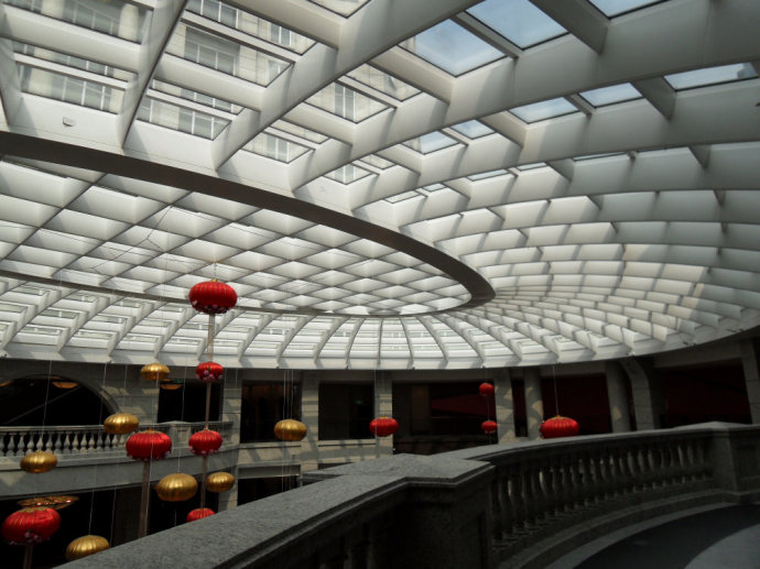BELLAVITA百货公司是一幢漂亮的欧洲城堡式大楼。走进这座城堡,迎面是一个巨大的椭圆形室内广场,用地砖铺成黑白相间的条纹图案,广场挑高20米,上面是圆弧形的玻璃采光罩,阳光透过这别具一格的穹顶撒落在广场的喷泉上。广场四周是宽大的走廊,走廊之侧是一圈名牌商店。