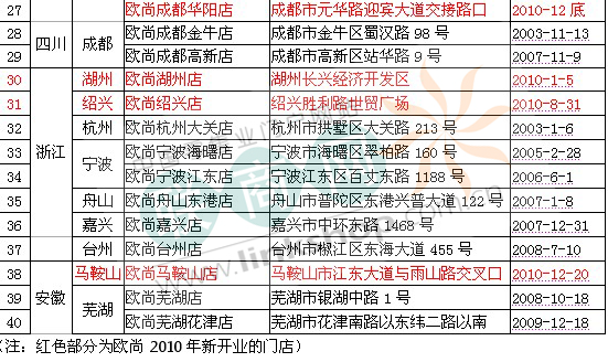 南京:欧尚将在南京红山路开第四家门店,预计2011年开业。