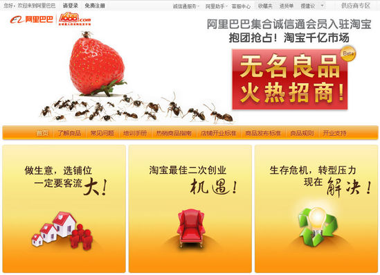 网易科技编辑近日发现阿里巴巴官方网站在本月上线了“无名良品”的招商页面。有两位淘宝卖家向网易科技透露,阿里巴巴的招商团队在11月中旬已经开始电话邀请首批2500家阿里巴巴诚信通会员加入其中,他们均在邀请之列。