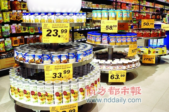 超市里的美国进口食品。