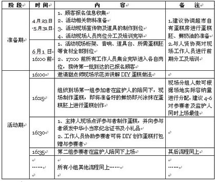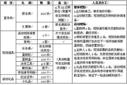 1. 儿童节蛋糕DIY活动物资及人员分工: