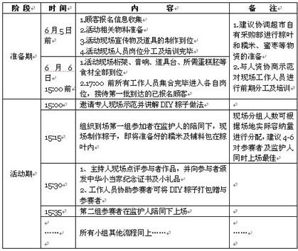 4. 激情收不停 活动时间:5月23日-6月12日 活动内容:活动期间现金消费满50元即可使用“五一”活动期间赠送现金礼券一张,单次消费限使用一张。 收券须知: 1)活动期间礼券限单人单笔现金消费满50元使用一张,不可累计使用; 2)使用后本券由收银员回收,不再返还顾客; 3)顾客使用时需按照纸张压线撕取本券方可使用,若出现破损、再复印、券面污染则本券无效。 会员活动 活动主题:悦动端午,会员独享 活动时间:6月2日-6月6日 活动内容:活动期间推出会员限量5元超值家庭装粽子,每位会员限购买两袋。 注: 1)本活动为维护前期办卡会员,利用低价节日商品吸引老会员进店消费,逐步培养会员消费习惯,促使顾客忠诚度的达成; 2)在礼品数量选择上,可根据本店实际情况在毛利允许范围内自行把控。 PR活动 活动主题:中华小当家 活动时间:5月23日-6月6日