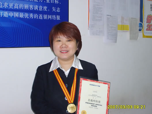 在苏宁电器北京联想桥店门口见到师晓雯店长的时候,她刚巡场完毕,正在用最新款的iPhone接打电话。在随后的谈话中得知,她还注册了微博,时常通过手机客户端更新微博。她拿着手机给我看她的微博主页。看起来,这是个时髦的店长。 但是,且慢,为了学会使用iPhone,今年年初,师晓雯专门花了两周时间,自己琢磨,并由店里的年轻员工轮流教她。 事实上,自踏入零售行业至今,师晓雯始终保持着这股学习和认真劲。采访中,她特别强调,做零售一定要有悟性。“悟,悟,悟,悟得到,没门也能进得去,悟不到,门里你也绕不出。” 师晓雯于1999年7月加盟苏宁,担任北京刘家窑空调部营业员,后晋升为该店负责人;2002年10月,调任北京苏宁电器联想桥店店长;2006年,晋升为北京苏宁电器西北片区经理兼任联想桥店店长;2010年被评为“2010北京市劳动模范”。 在她的努力下,联想桥店,这家4000平米的门店,年销售做到5亿元,在销售上无可厚非地成为北京的“旗舰店”。 当然,她成长的背景是苏宁的发展壮大。1990年创立于江苏南京的苏宁电器,于2000年停止开设单一空调专卖店,全面转型大型综合电器卖场;2002年4月,正式进军北京市场;2004年7月,在深交所上市;2006年时拥有连锁门店351家,至2010年时,除去日本和香港地区的31家门店,在国内的门店已达1311家,5年内增加了近1000家;2011年6月19日,发布“未来十年战略规划”,立志在连锁地域、科技创新、服务能力等方面向世界级企业前行。 “我也是跟着企业一同成长起来的,见证了公司的发展。苏宁的平台特别好,领导敢让你去做事,也放手让你去做。领导们也没有私心杂念,大家就是一心要把事情做好,把业绩做上去,有事说事,对事不对人。” 公司曾组织一个名为“九型人格与团队管理”的培训,里面提到九个类型的人格:完美型、助人型、成就型、自我型、思想型、忠诚型、活跃型、领袖型、和平型。师晓雯说,“我一听就知道我属于第六个类型——忠诚型。” 零售人忙,节假日顾客更多,更忙,而一店之长则是忙上加忙。师晓雯很少有时间去做其他的爱好。儿子说,“我妈最大的爱好就是照相,我就经常帮我妈拍照,她说她在一天天老去,要用相机留住她年轻时的样子。”