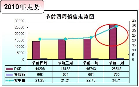 到超市购物,发现卖场区有月饼陈列,看来又是一年中秋时,花好月圆满一年。 “一年之计在于春”,预示着辛勤耕耘的开始,早下手,播种丰收的种子。对于商家来说,“一年之计在于秋”也是正确的,春节与中秋节的销售额占据了全年销售额的40%,如何经营好这两节,就显得至关重要。为了两节,每个商家都卯足了劲做最吸引眼球的造势活动。 下面以我所负责过的门店数据为例,谈谈我对中秋节门店销售的分析和预测。 销售趋势分析 一、2010年中秋日销售走势分析 从2010年中秋节前30天销售走势来看,日销售走势持续走高,但成长性不太明显。每个周末都会出现一段高峰,销售最高峰出现在中秋节前一天,高销售主要来源于客单的高贡献。 二、2010年与2009年周成长性比对 同2009年相比,2010年在销售走势上有三大差异。 一是整体销售比09年成长,市场前景还是比较乐观;二是前三周销售同比09年有所增长,节前一周销售低于去年同期,体现出消费提前的迹象,节根效益有所减弱;三是周销售走势基本稳定,前三周每周之间基本涨幅不大,而去年同期销售成长性更加明显。 三、走势反映的一些顾客消费模式变化 随着生活水平的提高,健康指数提升,顾客消费落于平日,节日与平日消费商品并不具大的差异,节令性商品并不会引起其生活习惯的改变,大部分顾客只是顺势顺节消费或体验一下,大家一起吃个月饼。 虽然消费者更加理性,但销售额依然有良好的成长性,说明顾客消费时为了商品品质有所保障会选择正规场所,。 计划性增强,不管是关系维护还是拜访亲朋好友,顾客做好了节前三十天计划,给自己一个足够时间做关系维护,时间管理上显得更加从容。 四、重点类别解析 节令商品上,香烟类占据第一位,主要以高单品牌为主。香烟作为奢侈品,虽然吸烟有害健康,但其还是扮演着不可替代的位置,成为走亲访友的首选。 位居2010年节令商品销售第二位的是饮料,而2009年为副食品,说明在拜访朋友中,副食中的油类份额也有被节令饮料取代的趋势,送饮料比送油更有价值感。 酒类位置没有改变,烟酒不分家,符合节令消费特点。不管是朋友聚会还是家人团聚,酒水必不少。至于酒中之宝的茅台、五粮液,伴随着居民销售能力的提升,也可能成为一般家人聚会的佳品。 2011年销售预测 1.通过对去期节令经营分析,今年的中秋节差异不会太大,但销售周期的把握来源于对每日销售的把握,门店不要去等待销售,要努力完成每一天的销售目标。 2.商家不仅要把顾客吸引进来,而且还要看有没有能力让顾客买单。 3.节令性商品还是顾客走亲访友的首选,符合中国传统文化节令的商品自然一个不能少。各商家应更早地将商品备足,相信每一日都是黄金日,也许明天就有一笔大订单,进账几十万元。烟酒、饮料、差异品、个性化定制都可成为业绩来源的组成部分。这一切考验的是经营管理者的驾驭能力。 4.消费更加理性,随着物价持续上涨,特别是生活必须品价格节节攀升,已影响到顾客的开支结构。为保证一日三餐所需,顾客势必调整消费结构或压缩结构中支出。 5.安全与健康还是消费主流。品质决胜时代已开始,但目前尚处在鲁莽阶段,鱼龙混杂的情况较多。品牌洗牌在国家监管下开始浮出水面,但整个市场远远没有到保障,还需要持续的努力。这是发展中的问题,需要用发展来解决。但每一件安全事件都会给消费者打下深深的烙印,放弃与选择都让消费者把安全与健康放在第一位。这是理性,也是成熟。 2011年重点经营的把握 重要节令,首先需要大手笔企划方案,来带动人潮;其次是营运打造平台让每个商品做最佳演出,观众就是顾客,要让他们身临其境,并给与发自内心赞许和掌声;三是这场演出的主角是商品,高品质的服务是桥梁,整个卖场体现的是概念或者说是氛围。 一、企划方案 若想要中秋节企划方案让人耳目一新,并非易事,需要企划人费尽脑细胞,做到突破创新。中秋节过的是传统,但卖的是概念,这种概念是以传统为本,融入企业元素,不断提炼升华,年年都会不一样。商家所要做的就是努力把概念传递到每个目标区域,包括社区居民、商务办公、新闻媒体等。 概念的设定可以通过主SP案实现,建立顾客进入的消费渠道。如以月饼作为诉求点,但诉求点的延伸远远超越月饼本身,超越的部分包括包装、月饼组合套餐、活动搭配等,目的都在于增加卖点,取悦消费者。 如果概念指向空间,那么卖场的商品大战更多的是策略性的价格战。而价格的高低决定于商家在品牌主人心目中的地位,最后体现在价格折让的幅度。 还有一个决定能否更多营收的关键就是人,要强化服务员工的教育训练,掌握主SP概念并能够熟练运用,做好商品价值的提升。每个服务人员与顾客的沟通遵循这种概念,并从卖点开始,满意结束,将概念的真正价值实现出来。 二、重点商品备货 粮草先行,对于商家来说,商品就是商家作战的粮草。依据2010年中秋节经营走势,预计2011年中秋节重点类别不会有太大的变化。 香烟还是将国家品牌中华烟作为首选,依据区域消费特性,区域品牌香烟必须做好A+品的备货。 酒还是主要集中在国酒茅台、五粮液高价位的年份酒,目前因前半年价格问题,高端酒市场一直比较紧俏,如能在量上满足,就能创造无限营业额。当然区域品牌的酒也要备好,满足顾客消费需求。 饮料类也是需要特别关注的类